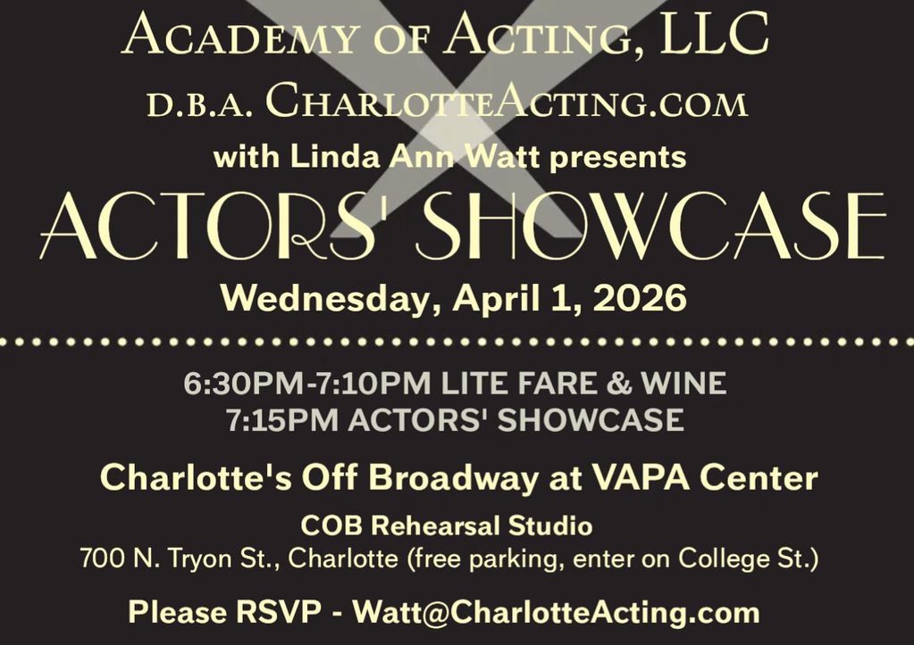 The Actors' Showcase, produced by Charlotte Acting and Academy of Acting,is an annual industry event for talent agents and casting directors in Charlotte and Atlanta.